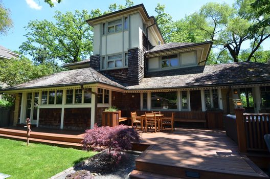 Cette superbe maison conçue par Frank Lloyd Wright est située dans un quartier idyllique de Oak Park avec de fantastiques restaurants à proximité et de nombreuses activités. La ville de Chicago, dans l'Illinois, n'est qu'à 25 minutes. La grande cour arrière de la maison avec jardins, terrasses et piscine creusée est parfaite pour les réunions de famille!