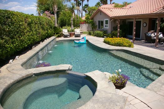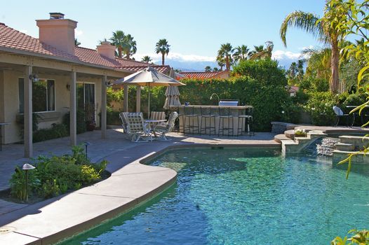 Cette maison se trouve sur un cul-de-sac dans une communauté fermée calme et sympathique près de Palm Springs, en Californie. Ce joyau possède un beau grand patio en pierre avec un barbecue à gaz intégré, un bar, une piscine privée en galets à l'eau de mer et un spa avec trois cascades, entourés de palmiers et de fleurs luxuriantes et éclairées la nuit. Palm Springs est également un endroit idéal pour sortir, faire de la randonnée, du vélo, du tennis ou du golf.