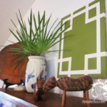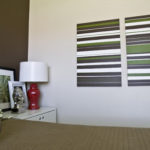 2 . Une autre excellente façon d’ajouter de l’intérêt pour votre salon est de meubler les murs vides de manière artistique. L’art peut être coûteux ! Pourquoi ne pas faire preuve de créativité à moindre frais, avec des projets artistiques que vous aurez réalisés vous-même ? Vous aurez besoin dans ce cas, d’une toile, de peintures, et d’une petite étincelle créative. L’Art géométrique se révèle très moderne et est facile à réaliser à l’aide de ruban adhésif pour peintre. Assemblez avec goût vos toiles pour créer un mur de galerie intéressante et étonnante.