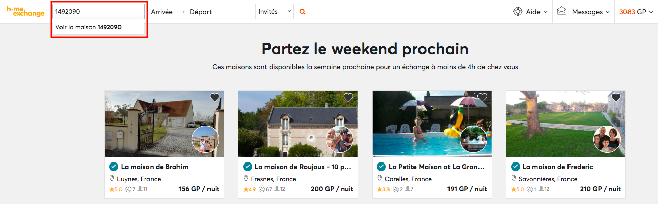 Nous avons remarqué que beaucoup d’entre vous souhaitaient pouvoir effectuer une recherche à partir de l’ID d’une maison. Depuis février, nous avons ré-instauré cette fonction, ce qui vous permet de gagner du temps quand vous organisez votre voyage !