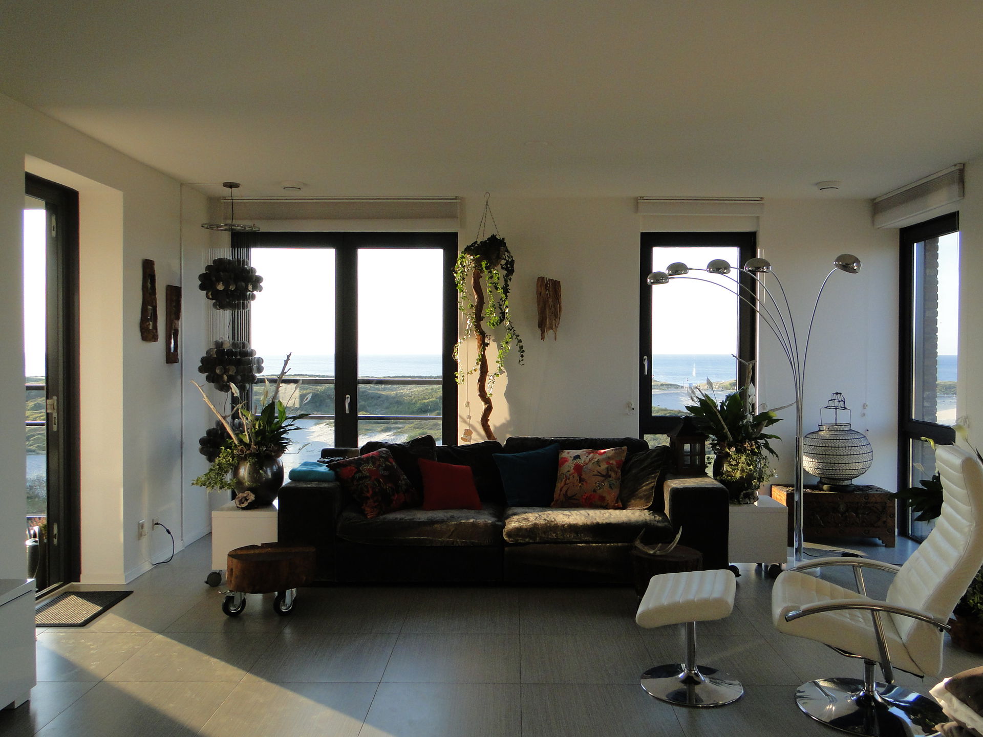 Et oui, vivre au dernier étage (avec ascenseur) comporte bien des avantages. Le logement de Kim offre plusieurs points de vue remarquables depuis plusieurs pièces du loft. Situé dans la banlieue d’Amsterdam et niché entre mer, dunes et forêts, cet appartement plaira aux plus contemplatifs.