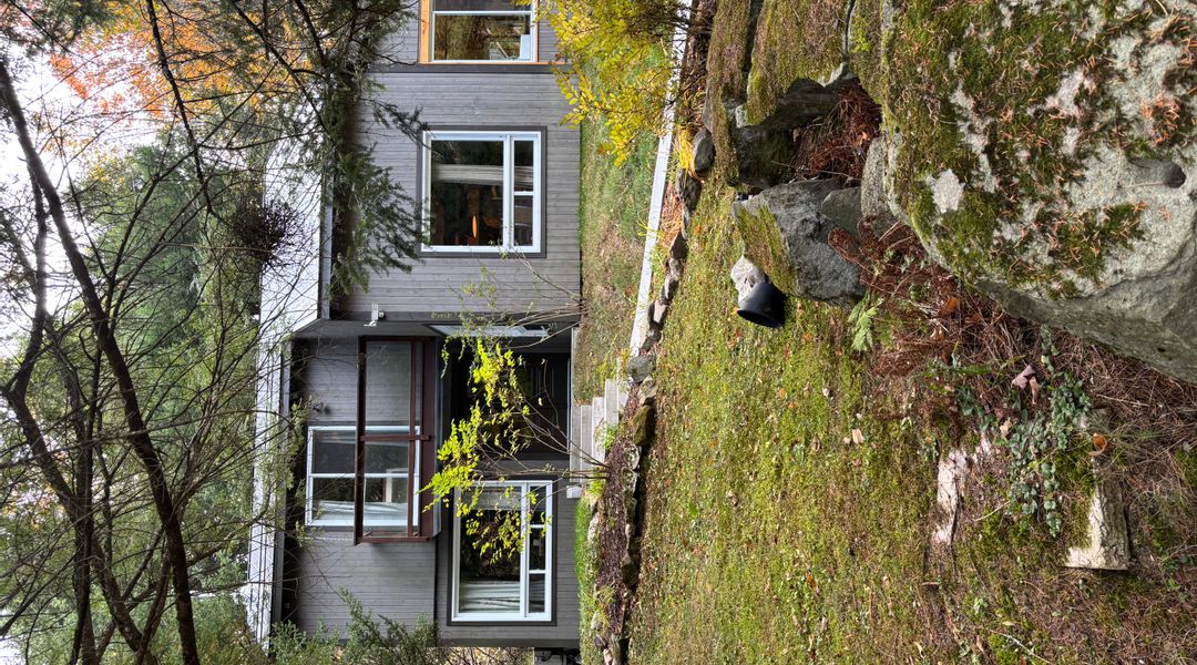 Chalet de Isabelle et Daniel avec petit lac baignable juste en face.